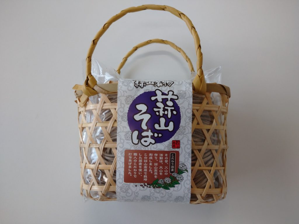 蒜山そばをかわいい籠に入れた籠そばです。ちょっとした贈り物に最適です。