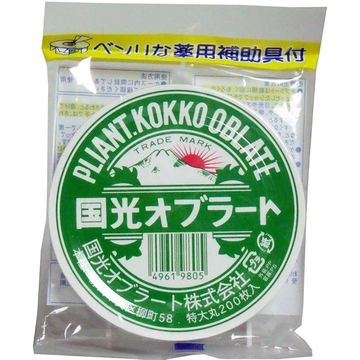 【国光オブラート】 丸型特大 200枚入■オブラートを使うと薬がなめらかに包まれて、のどごしが良くなります。 ■オブラートは安全な天然素材のデンプンから造られています。 ■お薬の飲みにくさをやわらげます。 ■お子様にも安心して使えます。